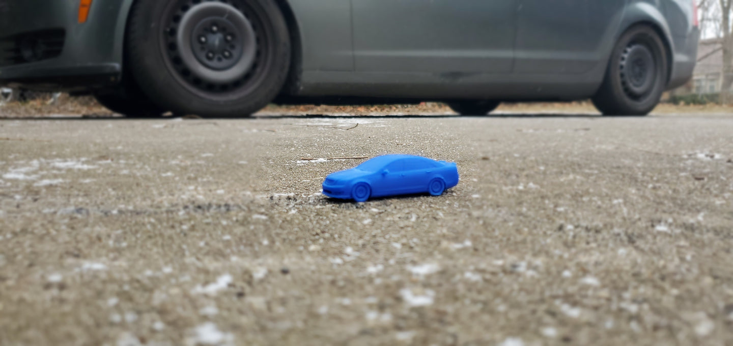 This model was created by scanning our company Caprice that we use for all our product development. It has our spoiler, a carbon front lip, is lowered and some flat portions have been added to the bottom to ensure it sits flat when displayed. Currently available only in 1:64 scale (standard hotwheels/matchbox).