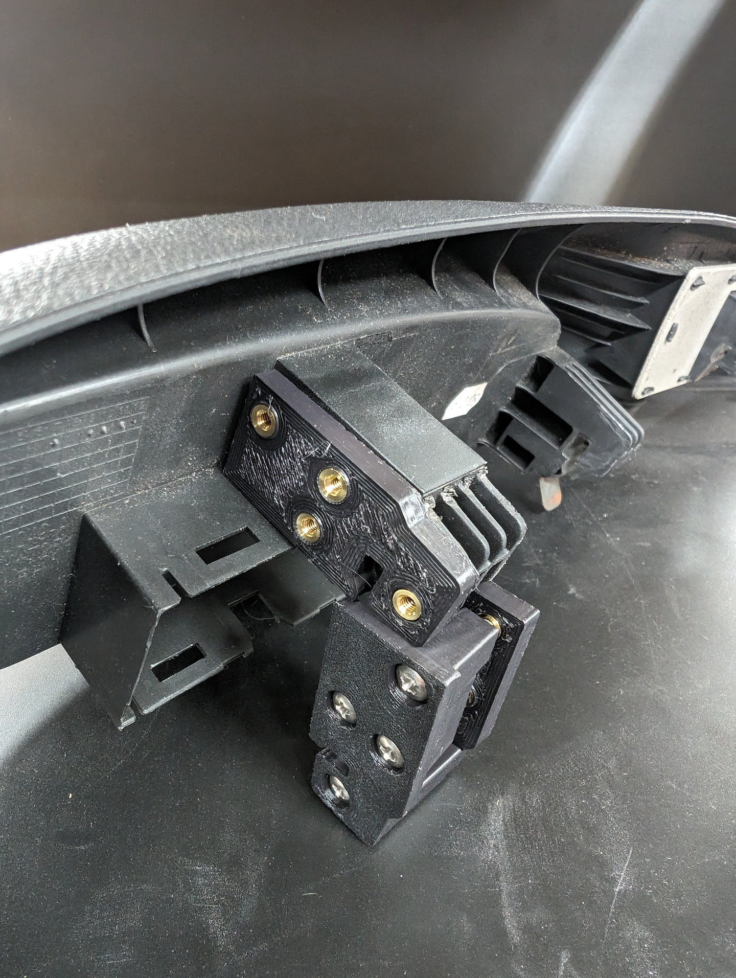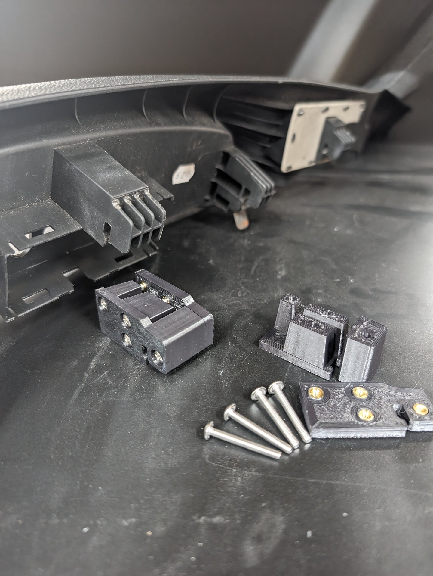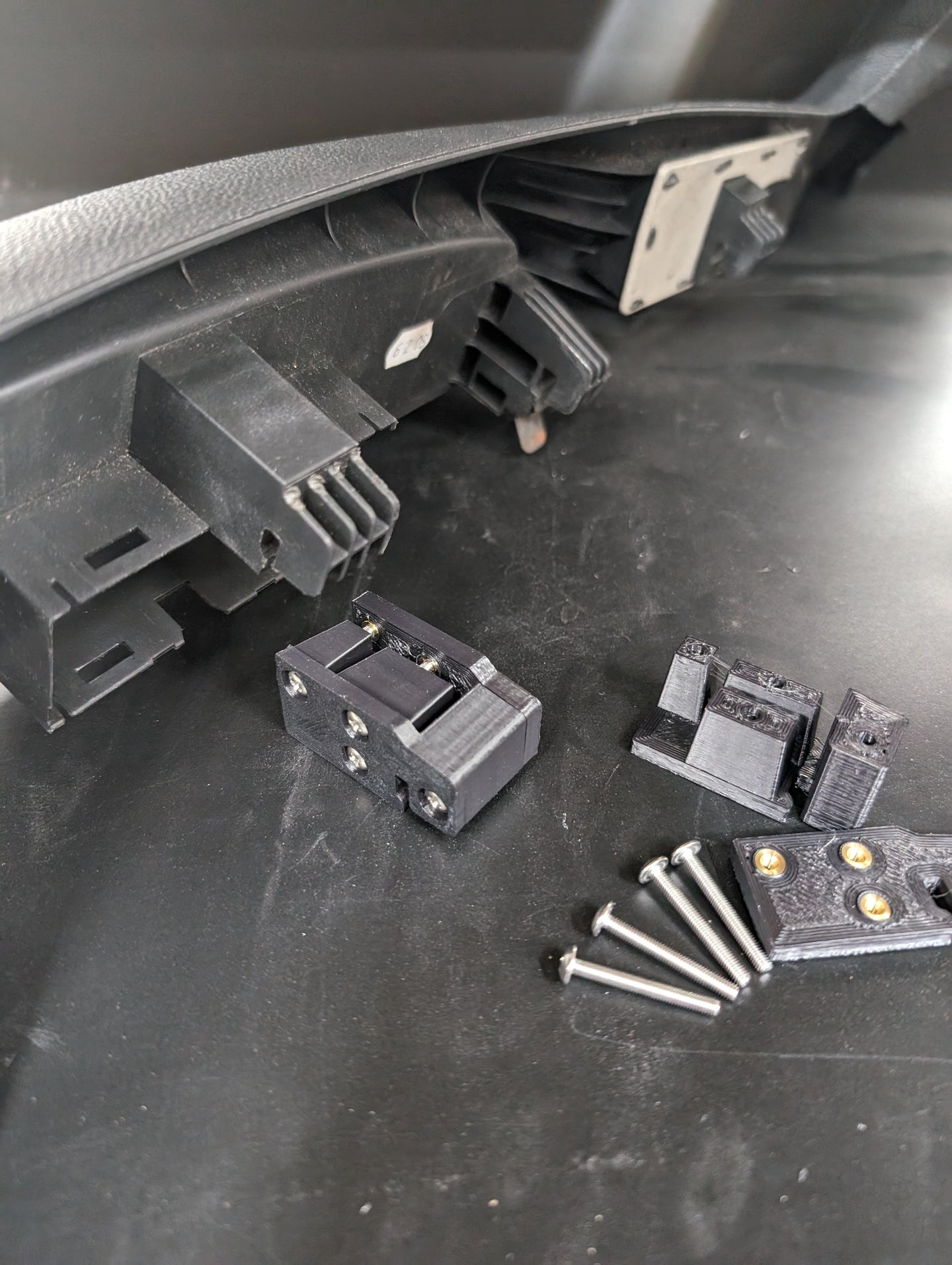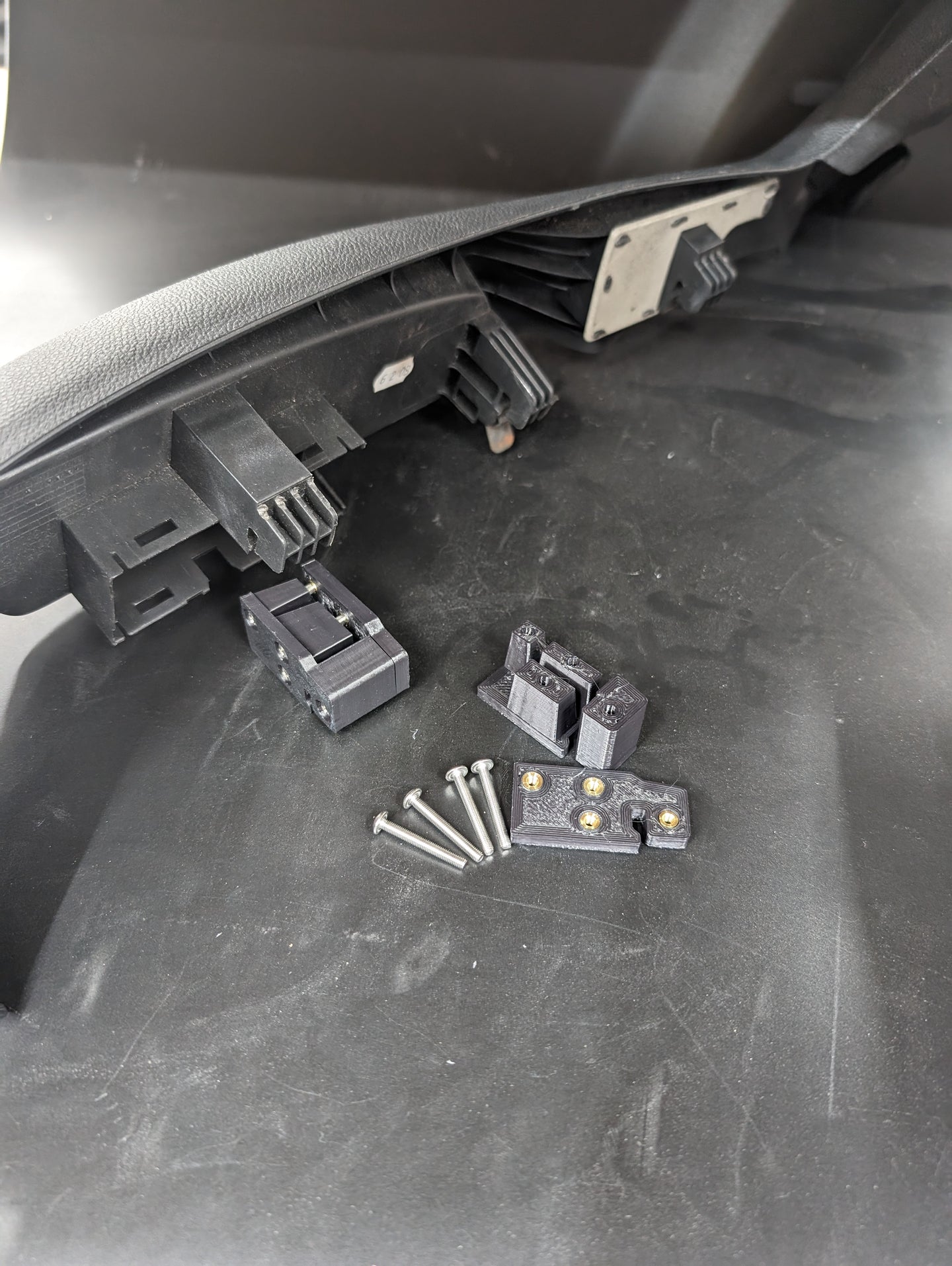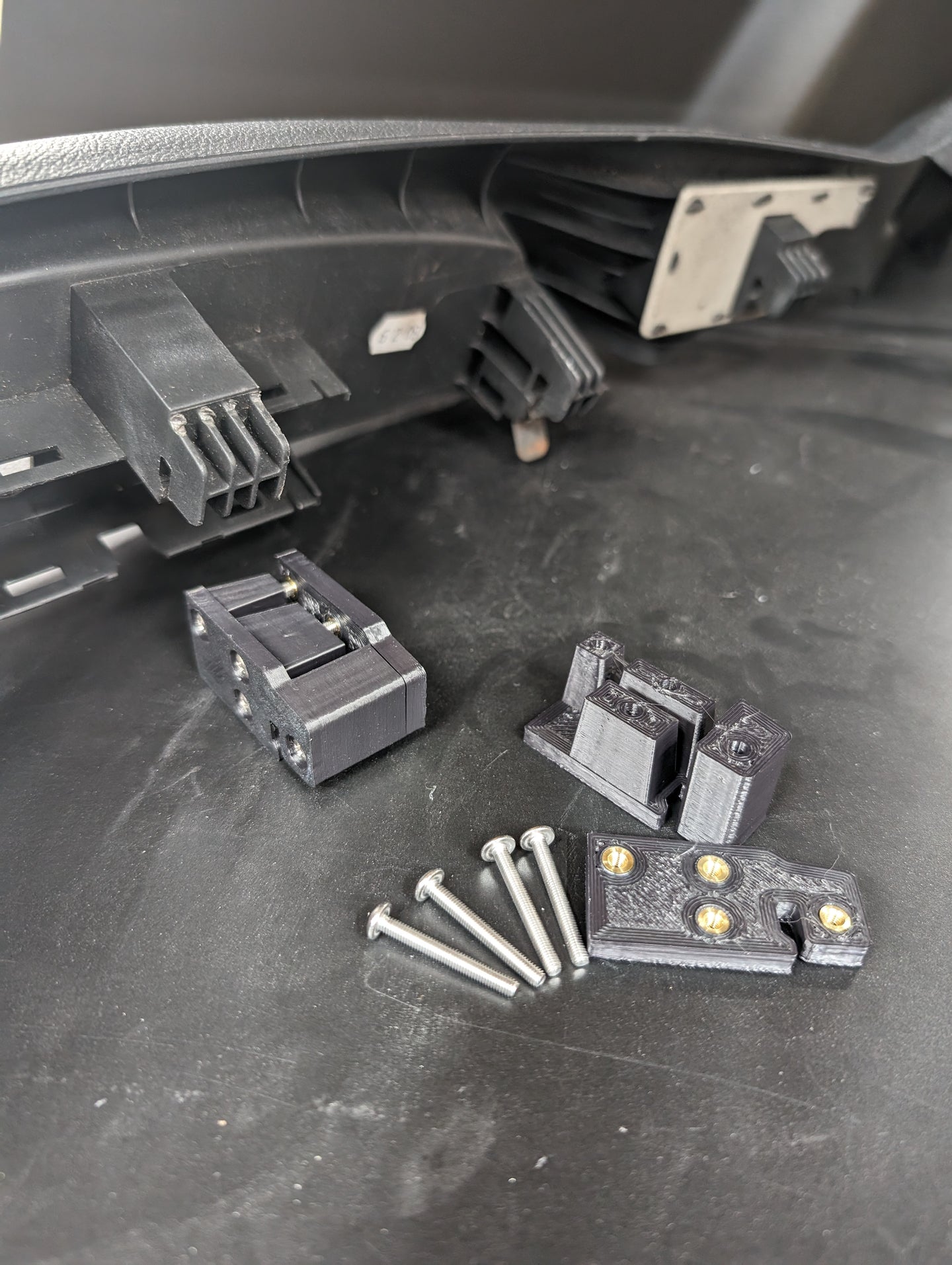 Do you have the dreaded broken seat trim hook that allows the seat trim on the outboard side to droop or flap around? Not anymore! These little brackets slide into the cored out section of the injection molded seat bracket. Once the broken portion of the seat trim is trimmed off, these brackets sandwich the old tab creating a new hook that is significantly stronger than the original. The sandwich brackets utilize brass threaded inserts and stainless steel screws even in the physical hook portion.