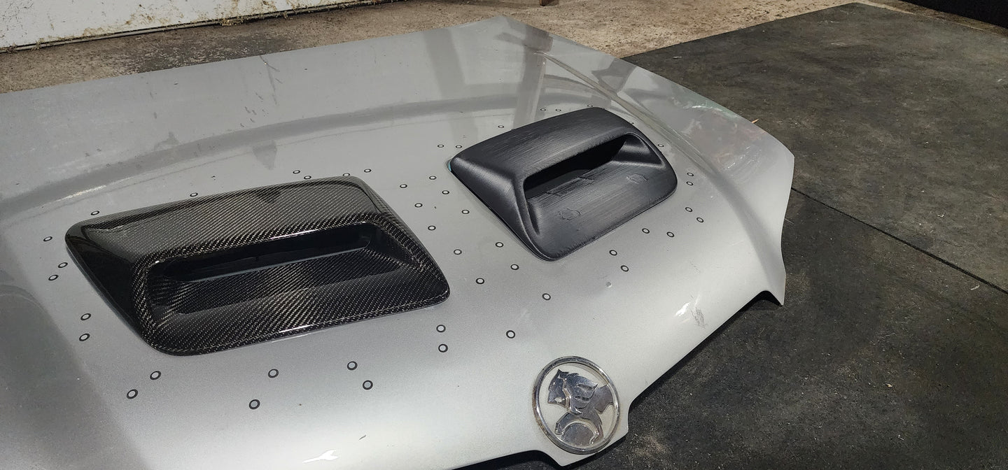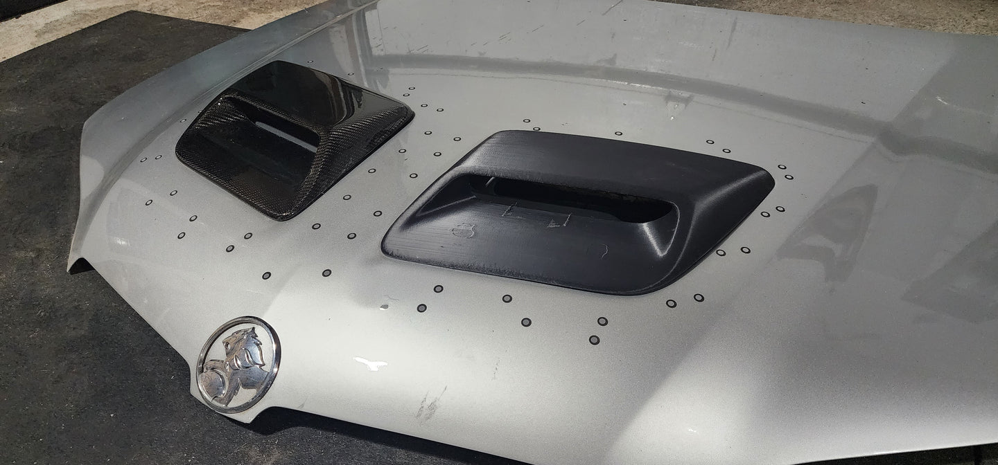 Just like our OEM style G8 hood vents, these are a direct replacement for the Walkinshaw style vents. These have all the features of the Walkinshaw attachments but also like our other vents we recommend you sand them, paint match them, and glue (or butyl tape) them on (the tabs have been left in the final part for alignment purposes only, not recommended for attachment). Some customers have removed the rear tabs to help with proper vent alignment. As these were modeled off of hand made carbon fiber parts these will need some work to fit each individual hood. We recommend using weights or a friend to help hold them down during gluing so that the fitment is consistent around the vent.
