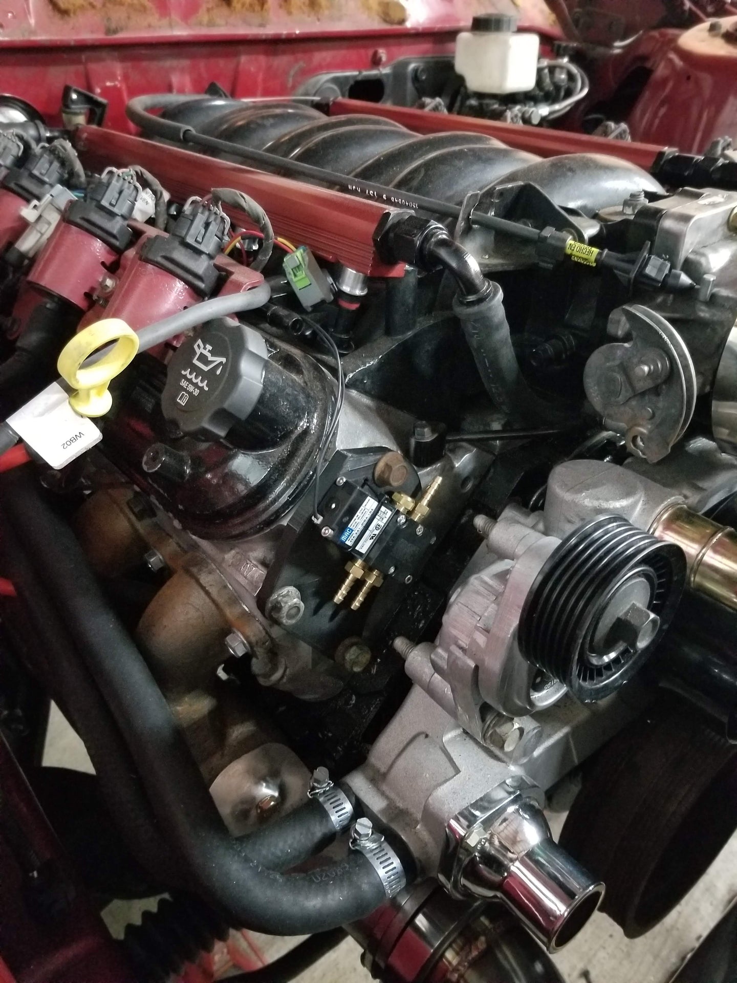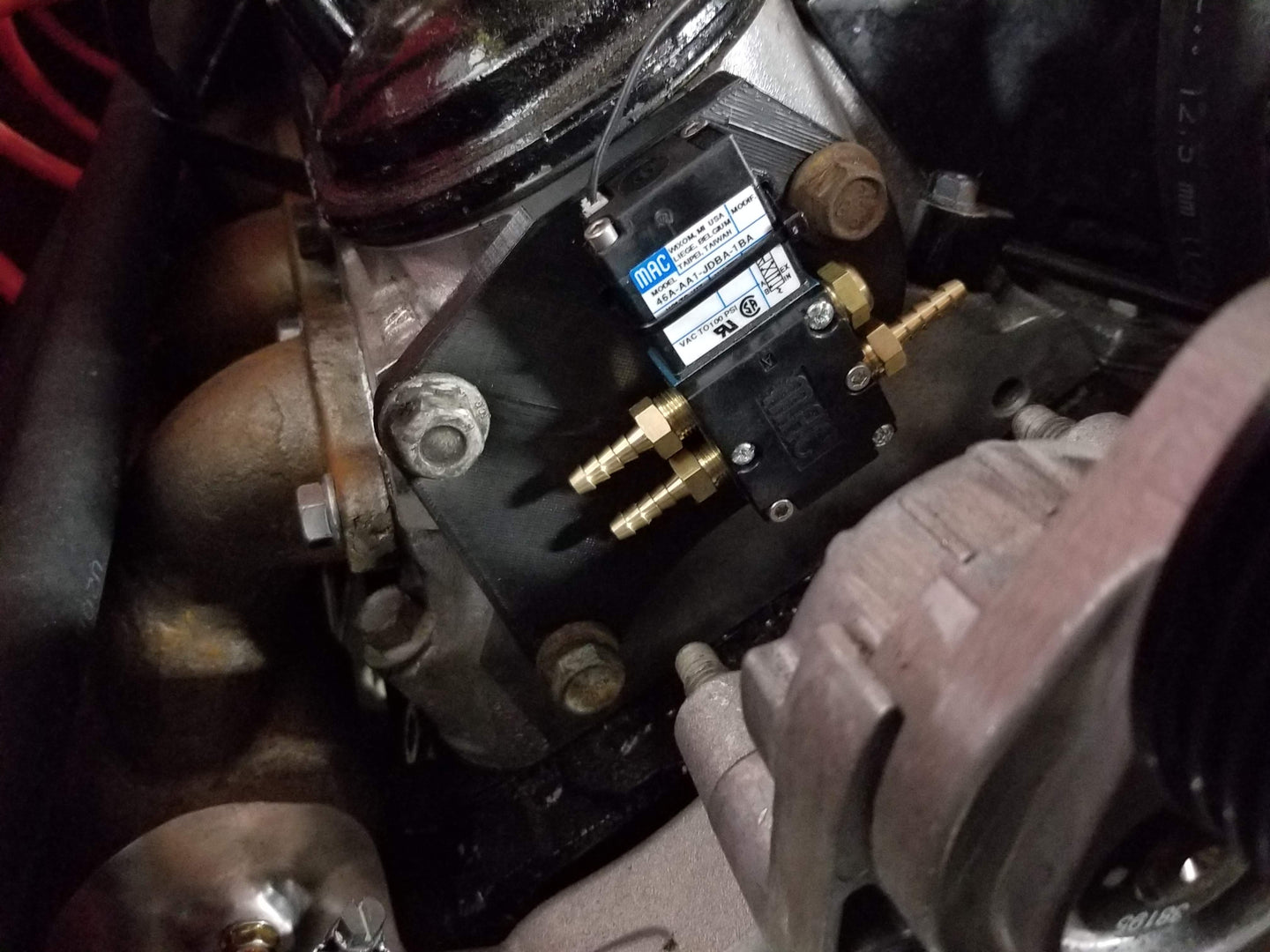 Mounts on the passenger side on the front of the cylinder head behind the water pump. Uses M3 bolts and nyloc nuts and a slot for redundant zip tie (not included). MAC Valve not included.