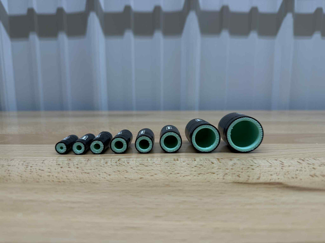 4 ply silicone caps for boost, vacuum, and coolant ports! They're rated to 125psi and 500°F for use in almost any application. Available in a variety of sizes and sold with clamps included.