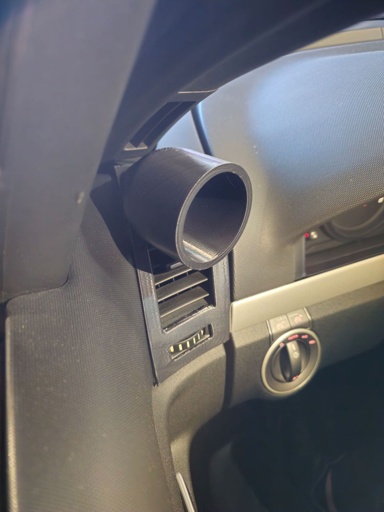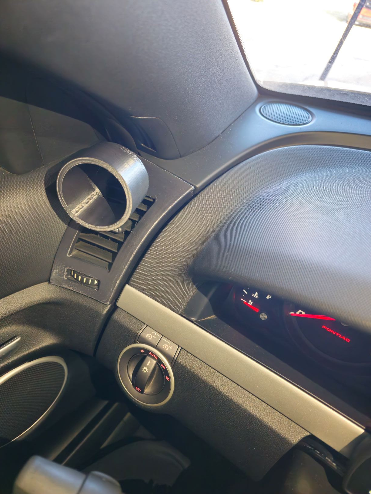 Want a gauge pod that replaces the vent by the steering wheel while still allowing air flow? This sticks out far enough that you can even fit an N gauge. Works for the G8 and 11-13 Caprice. This clips in in seconds and holds firmly (we don't recommend multiple installations as the parts are thin). The gauge pod allows for full range of motion of the HVAC shutoff wheel and the vane direction controller.