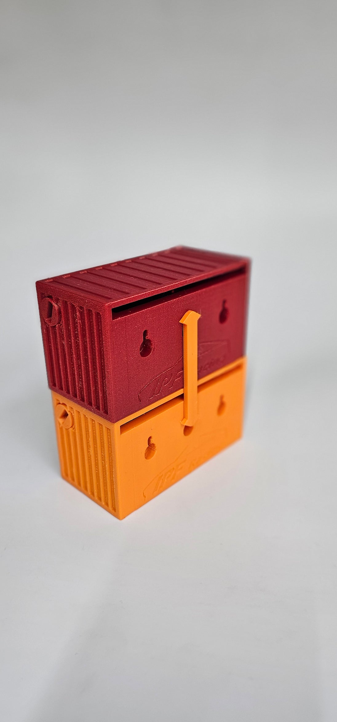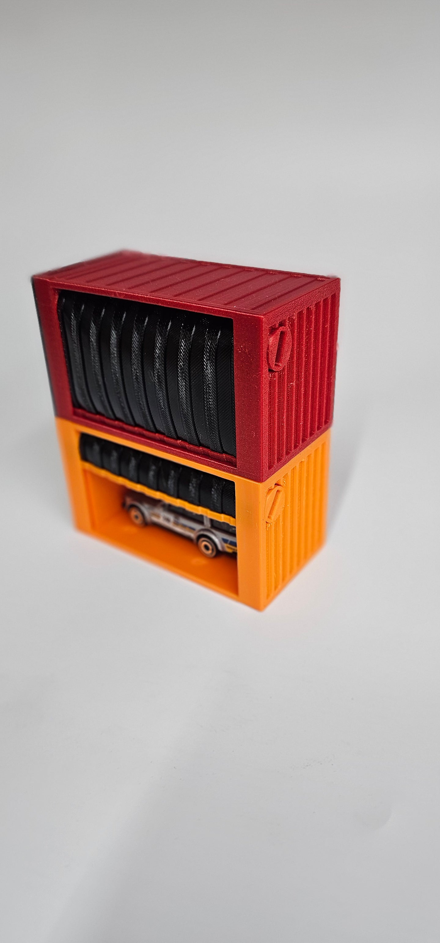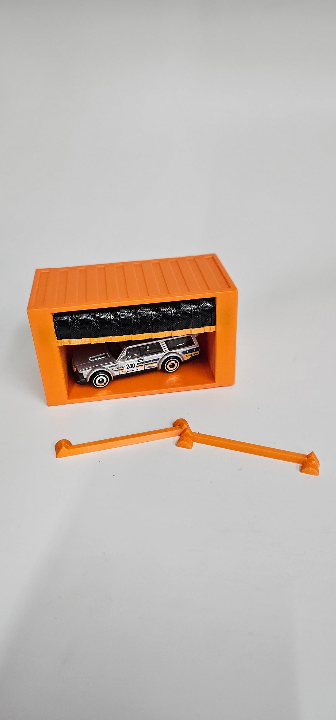 Styled to look like a shipping container, these scale model car garages / shipping containers hold popular brands like Hotwheels and Matchbox or any other 1:64 scale model including our resin printed models (not included). Insert your key from either side (or both) and spin to roll up the door and reveal the scale model inside. Containers can be mounted to the wall via standard screws (not included) using the mating bracket that has screw marking locations on it. Use both mating brackets to connect two containers together.